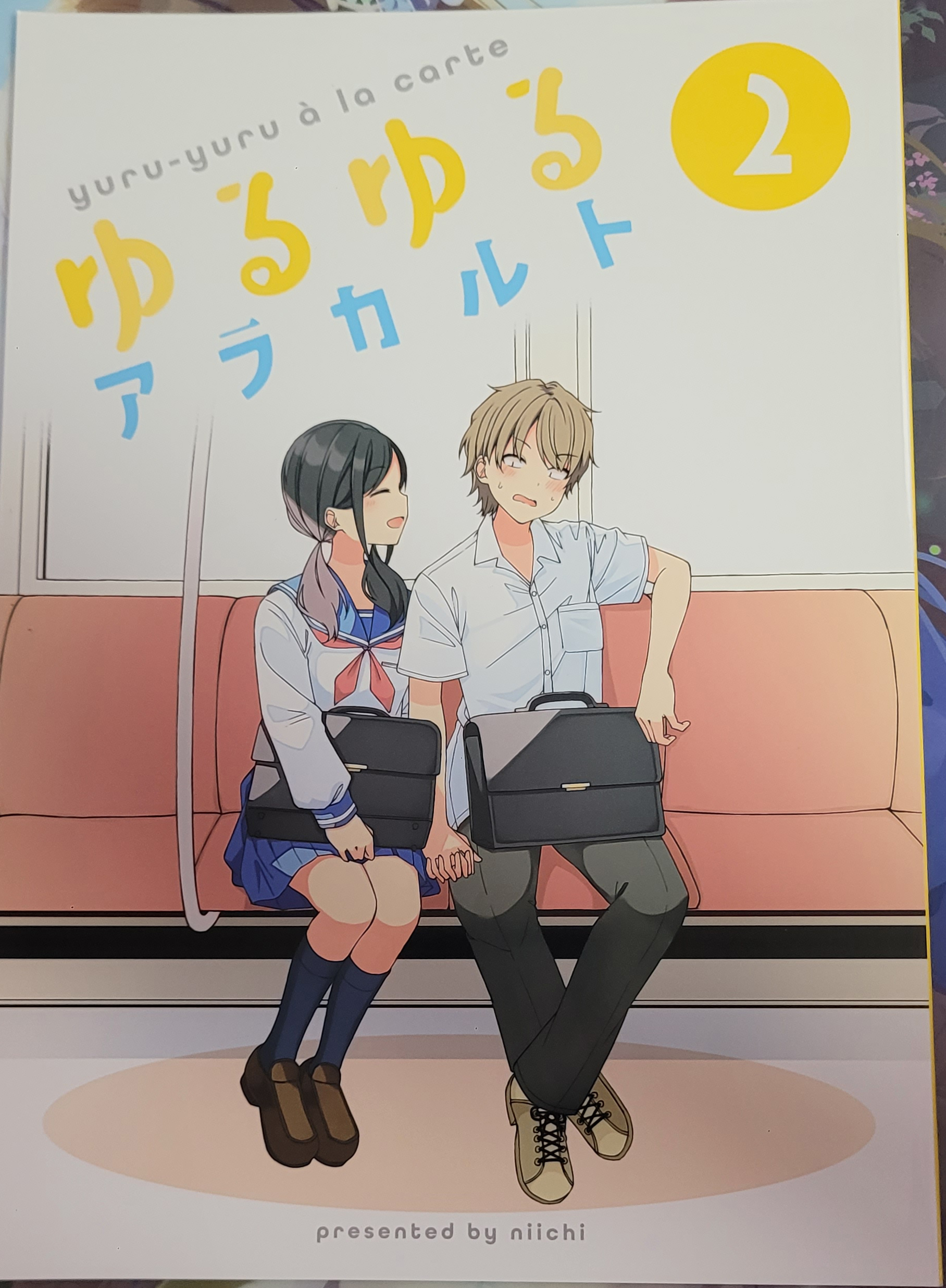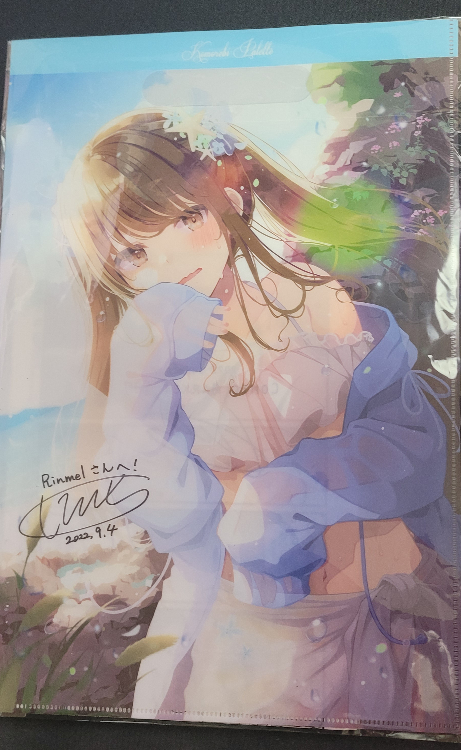 내용물은 작가님 싸인이 적힌 클리어파일과 현실구라 8권 느긋느긋 아라카르트 2권 코미케 C100 회장 한정책입니다
